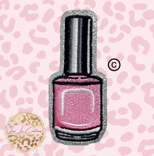 Pink Nail Polish Embroidered Iron On Patch | Hat Patch | Salon | Stylist