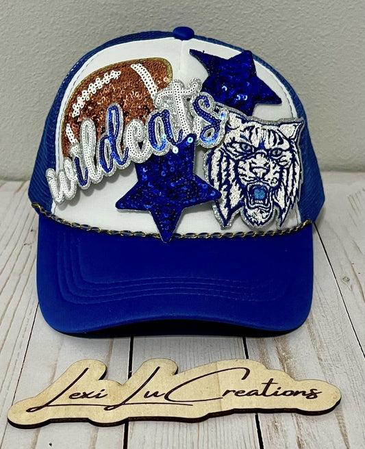 WILDCATS Mascot Iron On Patch | White and Blue Sequin Patch | Wildcats | Kentucky Patch