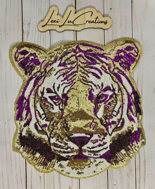 Purple and Gold Tiger Sequin Iron On Patch| Hat Patches | Geaux Tigers | LSU