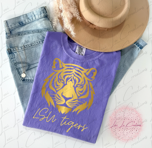Gold and Purple Tiger Face Patch Shirt