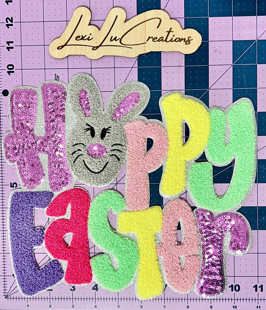 Happy Easter Bunny Chenille and Sequin Iron On Patch| Shirt Patches | Bunny | Rabbit | Easter Shirt