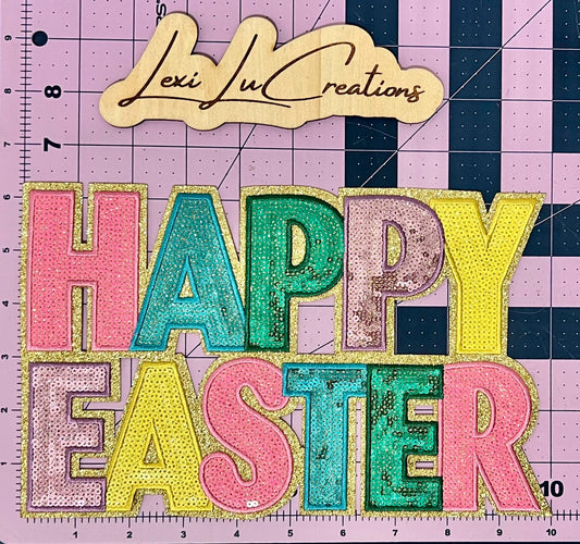 Happy Easter Sequin Iron On Patch| Shirt Patches | Bunny | Rabbit | Easter Shirt