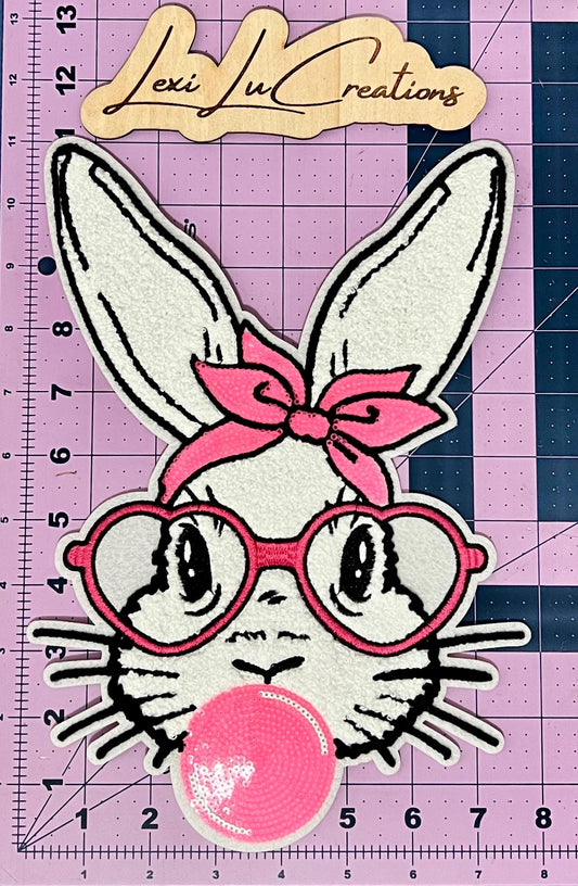 Bubblegum Easter Bunny Chenille and Sequin Iron On Patch| Shirt Patches | Bunny | Rabbit | Happy Easter Shirt
