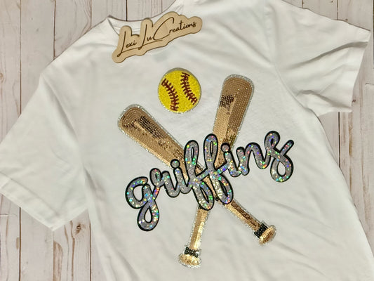 Griffins Baseball OR Softball Sequin Patch Shirt